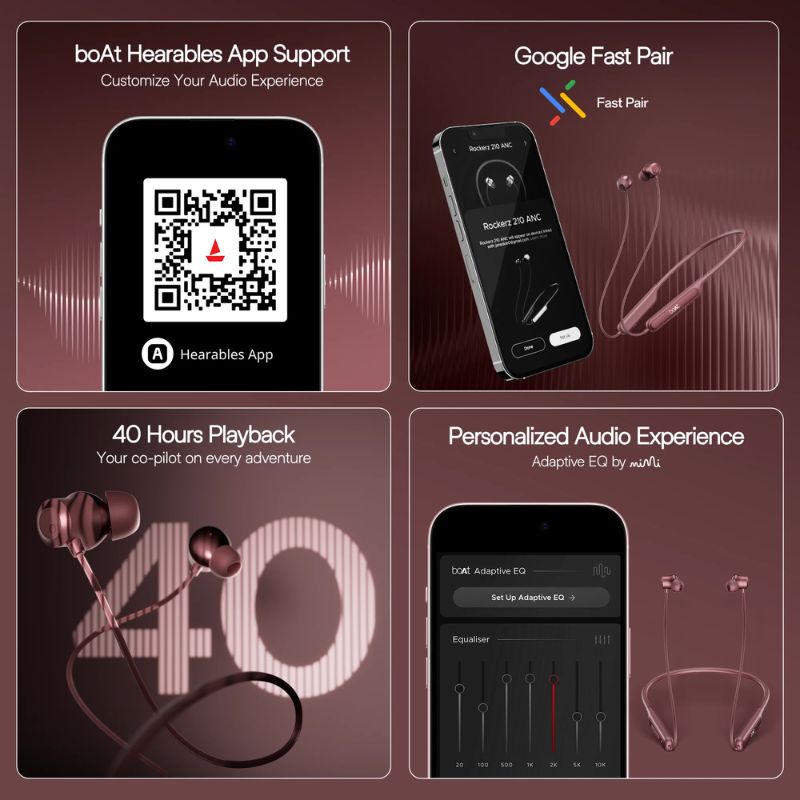 - boAt Hearables App Support: Allows users to customize button functions, choose from preset EQ modes, and set up Adaptive EQ by Mimi for personalized sound.