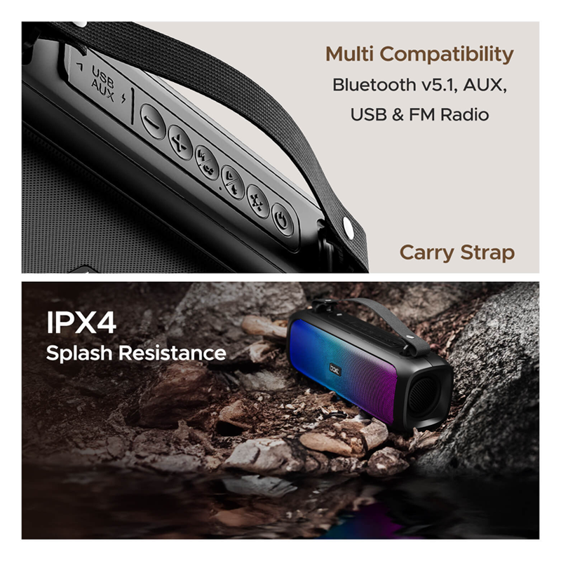 - The IPX4 marked water and splash-resistant build lets you carry your sound wherever travel without any worry.