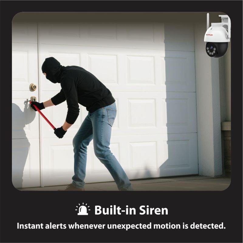 Two-way audio & siren: Built-in microphone and speaker allow communication; integrated siren adds security response capability