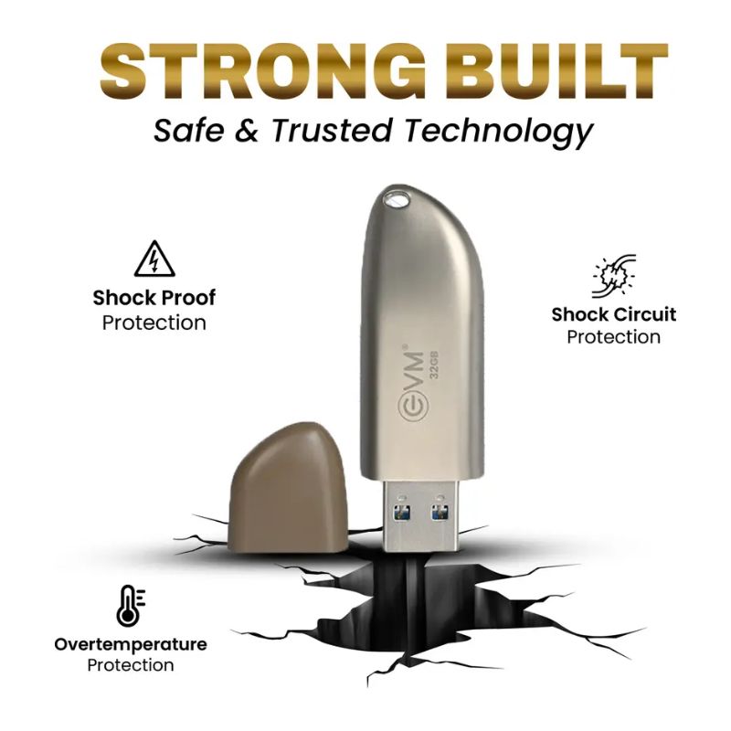 Ultra-Fast USB 3.2 Performance – The EVM ENSTORE+ 32GB pen drive delivers significantly faster transfer speeds than traditional USB 2.0 drives, making it ideal for moving large files, videos, and high-resolution photos in seconds.