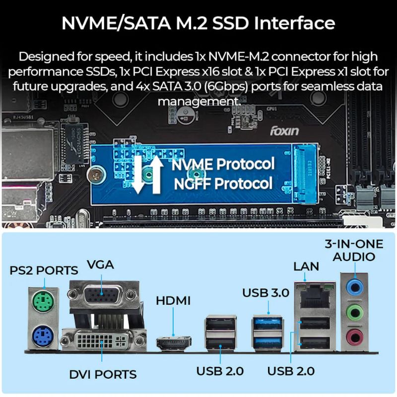 M.2 NVMe + SATA ports for flexible SSD/HDD storage options