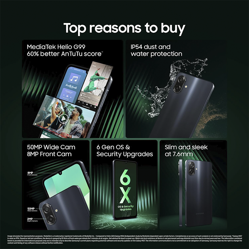 Security & Updates: Knox Vault, auto-blocker, and built-in theft protection; segment-leading 6 years of Android OS upgrades and 6 years of security updates